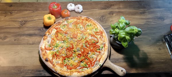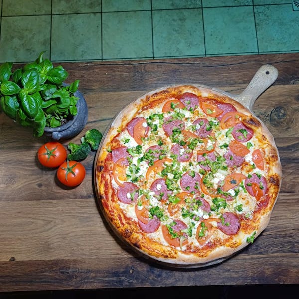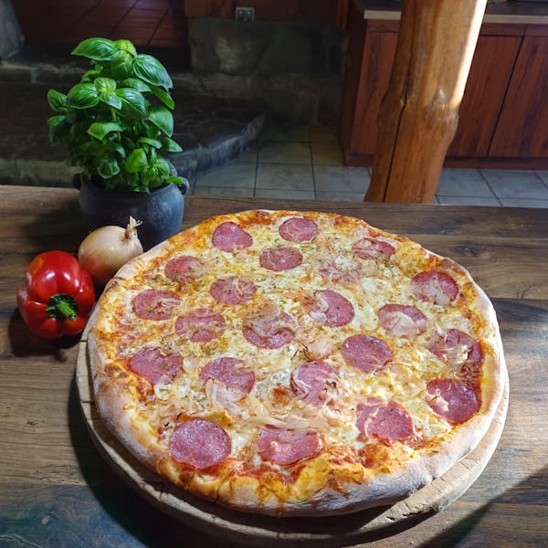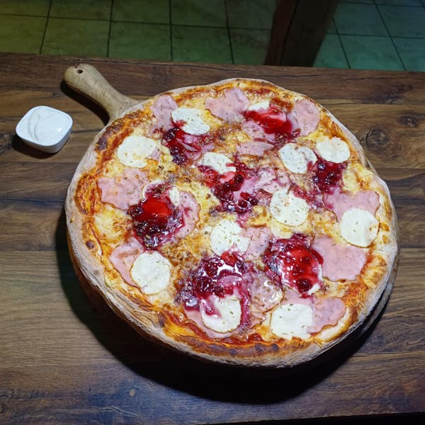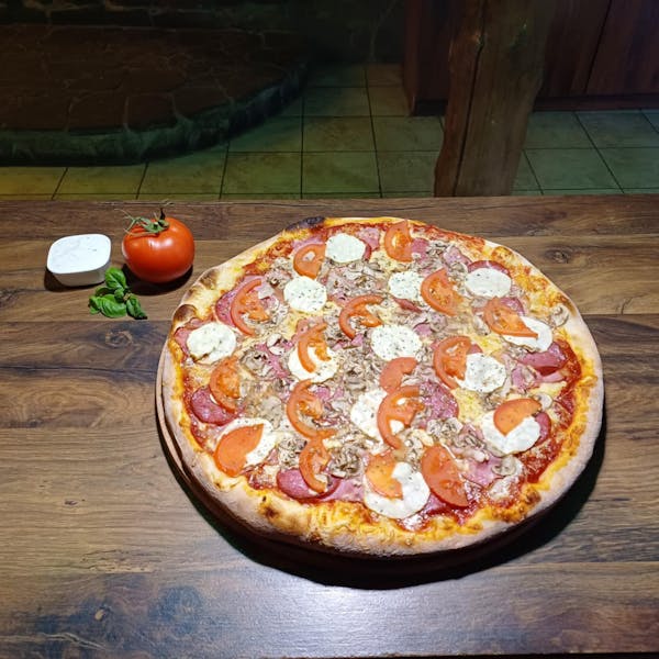 25. Chłopskasos pomidorowy, ser, oscypek, kiełbasa swojska, plastry boczku , cebula , pieczarki , oregano55,00 zł61,00 zł