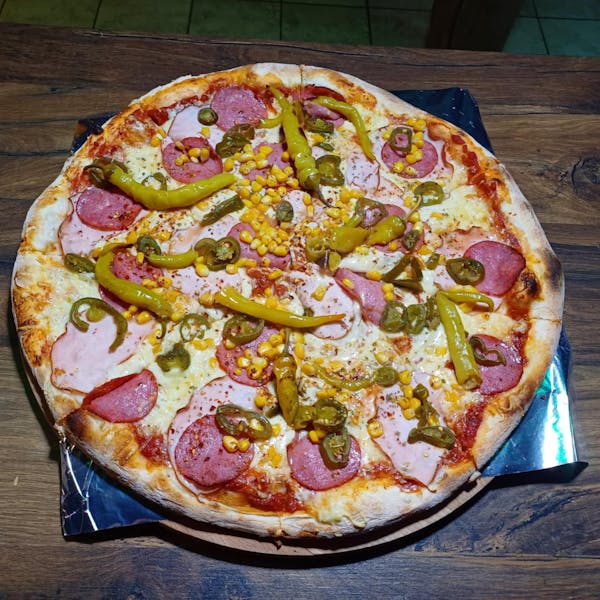 36.Italianasos pomidorowy, ser, łagodne włoskie salami, szynka prosciutto cotto, papryczki jalapeno, papryka, kukurydza55,00 zł61,00 zł